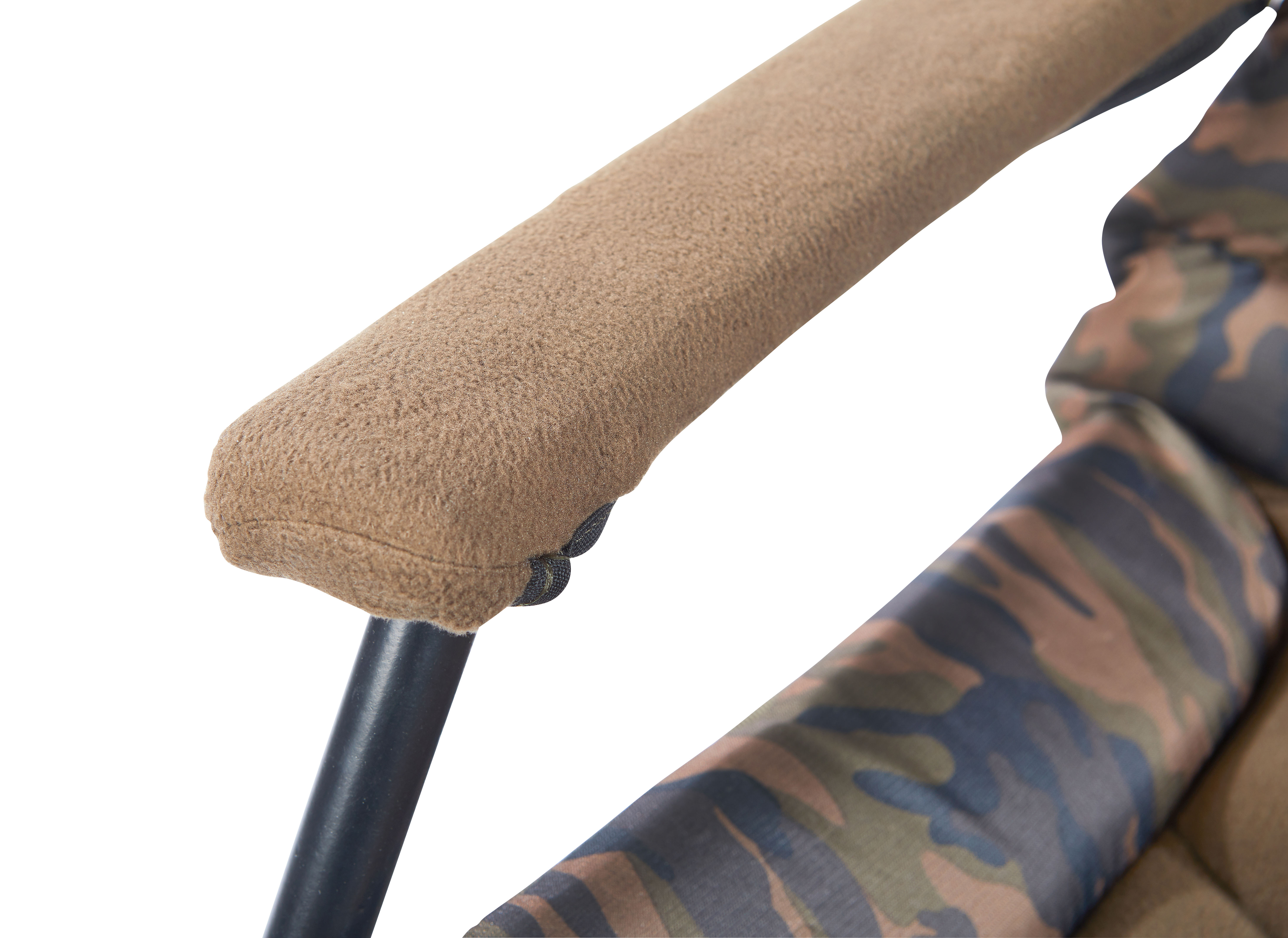 Ausstattung: 4 höhenverstellbare Beine mit beweglichen extra großen Schlammfüßen. Armlehnen mit Neoprenhülle für extra Komfort. Äußerst robuster Stahlrahmen. Rückenlehne verstellbar, äußerst komfortable Kopfstütze. Hochverdichtete gerippte Schaumstoffmatratze mit Mikrofleece Stoff innen und camoufarbenem Polyester außen. Sitzhöhe 40 bis 54cm, Sitzbreite 60cm, Lehnenhöhe 70cm, Gewicht 8,5kg. Zusammengefaltet: 81 x 66 x 21cm.