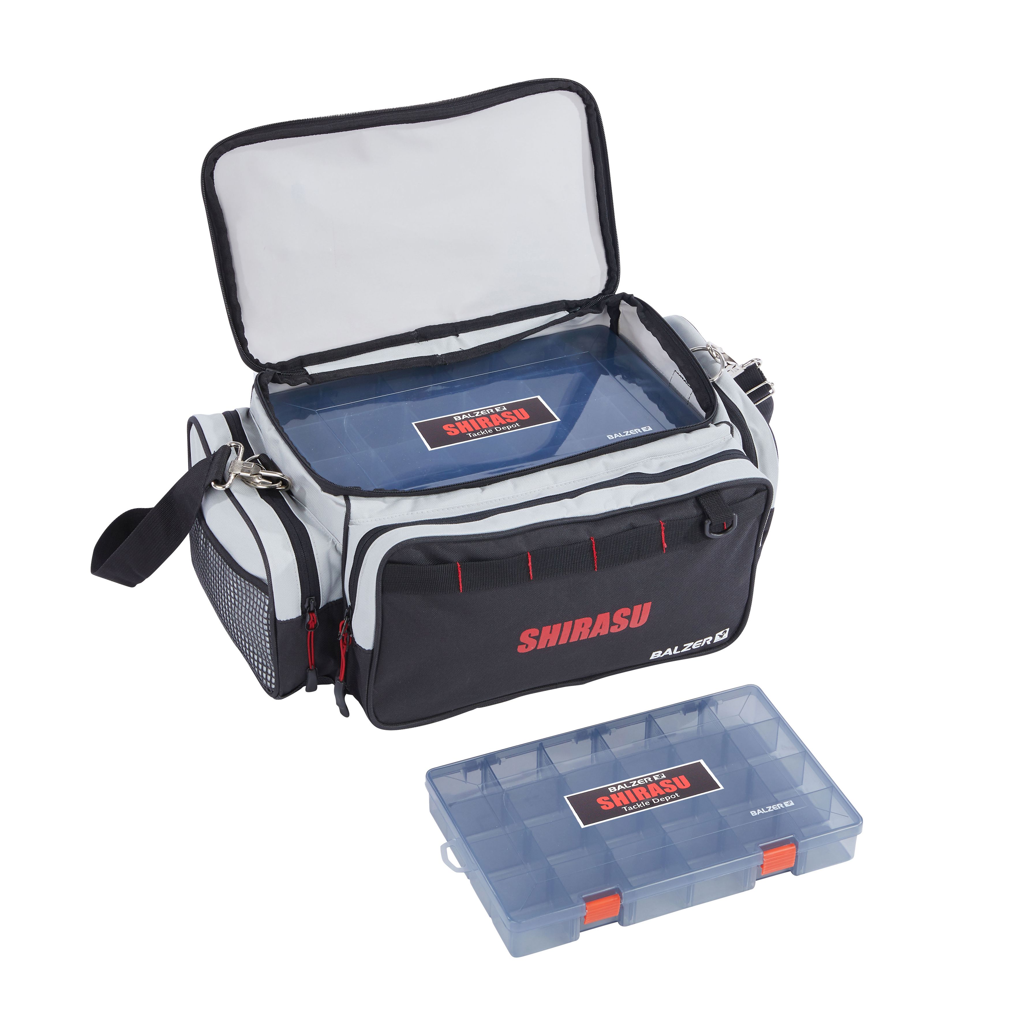 Organizer Bag, bestückt mit 2 Shirasu Tackle Boxen. Optional kann jede Tasche noch mit einer weiteren Box (einzeln erhältlich) nachgerüstet werden. Die Taschen aus hochwertigem 600D Nylon verfügen noch alle über 3 zusätzliche Außentaschen sowie einen wasserdichten, abwaschbaren PVC Boden. Die Deckel der Boxen sind UV geschützt, sodass der Inhalt auch bei starker Sonnenstrahlung nicht ausbleicht. Material: 80% Nylon, 10% PVC, 10% Polyester. Nachrüstbar mit Shirasu Box Art.-Nr. 1 19360/300.