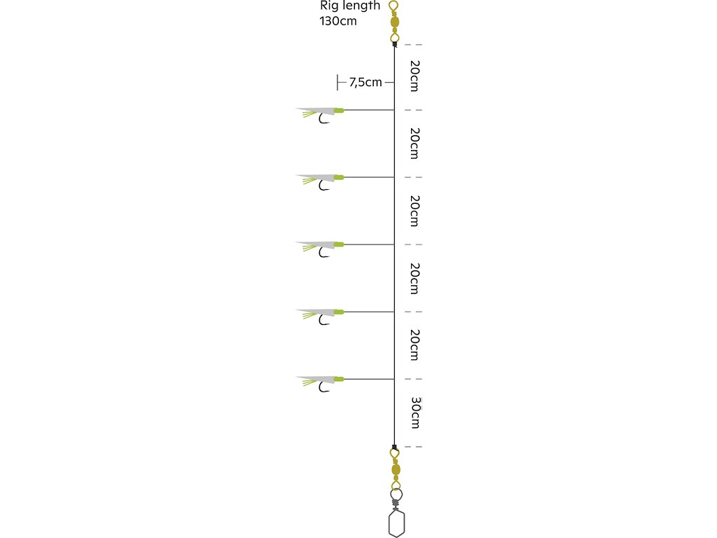 • Die Kombination aus echter Fischhaut, Flash-Haar und ultra-scharfen Haken macht dies zu einer natürlichen Wahl für den Fang von Heringen und anderen Köderfischen.