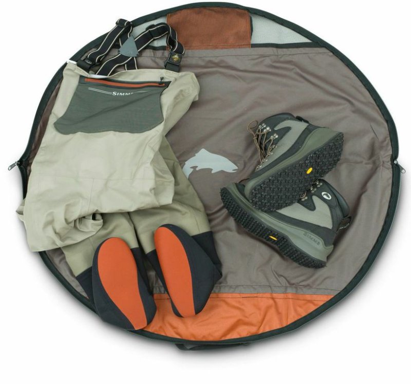 Das SIMMS TACO BAG ist konzipiert worden, um Deine nasse Wathosen und Watschuhe optimal transportieren zu können. Auch kannst Du die Tasche gleich einmal als Boden-Matte beim An- und Ausziehen benutzen. Das Teil bietet ausreichend Platz für 2 Hosen und 2 Paar Schuhe. Das Mesh-Gewebe sorg für etwas Luftzirkulation und verhindern die Bildung von Stockflecken und Schimmelpilz während des Transports. Einfach praktisch!