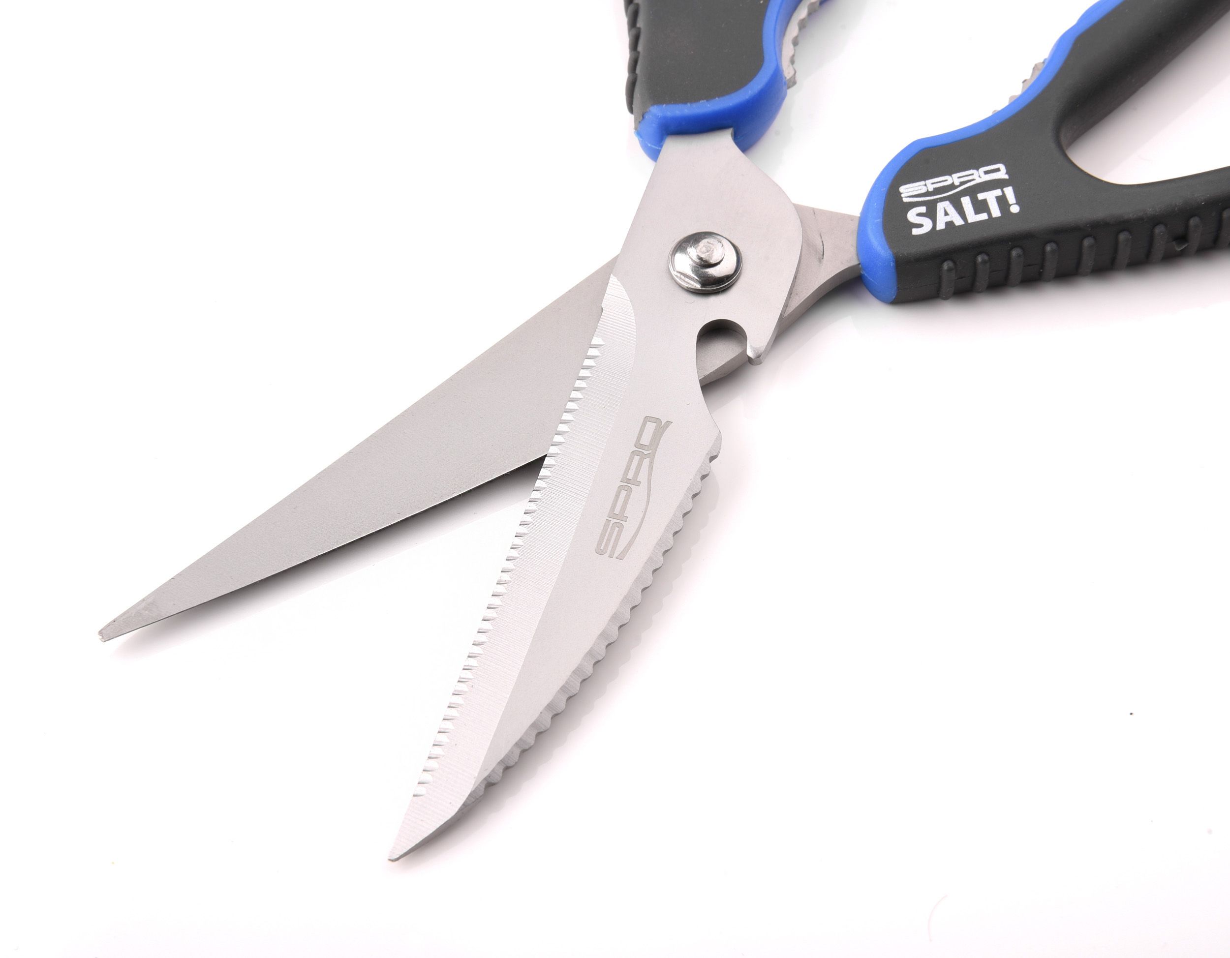 Die Salt Scissor Schere ist eine vielseitige Schere und bietet eine hervorragende Performance. Die aus hochwertigem Edelstahl gefertigte Salt Scissor Schere ist korrosions- und witterungsbeständig. Ihre doppelt gezahnten Schneiden ermöglichen das glatte Schneiden der Flossen oder der Haut von Fischen. Mit dem Entschupper kannst du den Fisch schnell vorbereiten. Die übergroßen Griffe sind mit rutschfestem Material ausgestattet, damit du auch bei schlechtem Wetter sicher arbeiten kannst. Die komfortable, zuverlässige und funktionelle Salt Scissor ist wahrscheinlich die letzte Angelschere, die du jemals brauchen wirst.