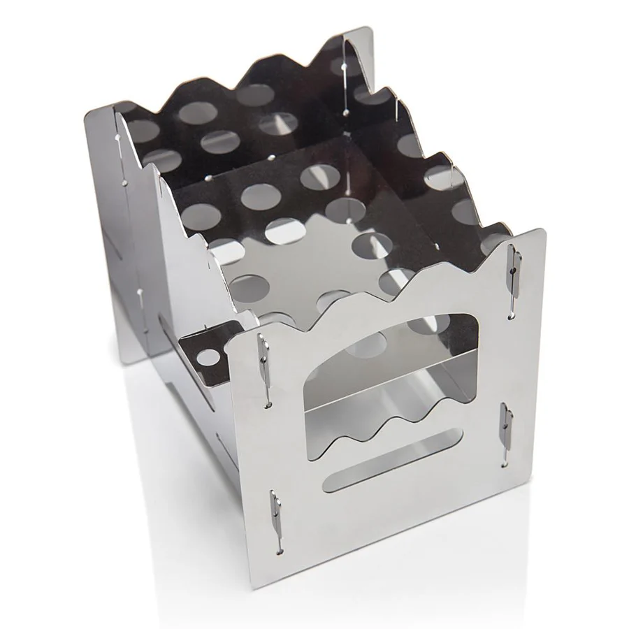 Auf diesen kompakten und effizienten Hobo-Kocher kannst du dich verlassen: Er trägt Töpfe jeder Größe und jeden Gewichts und lässt sich mit wenigen Handgriffen zusammenbauen. Gefertigt aus einem widerstandsfähigen Edelstahl, ist er genau das Richtige für Abenteurer, Camper und Bushcraft-Fans.