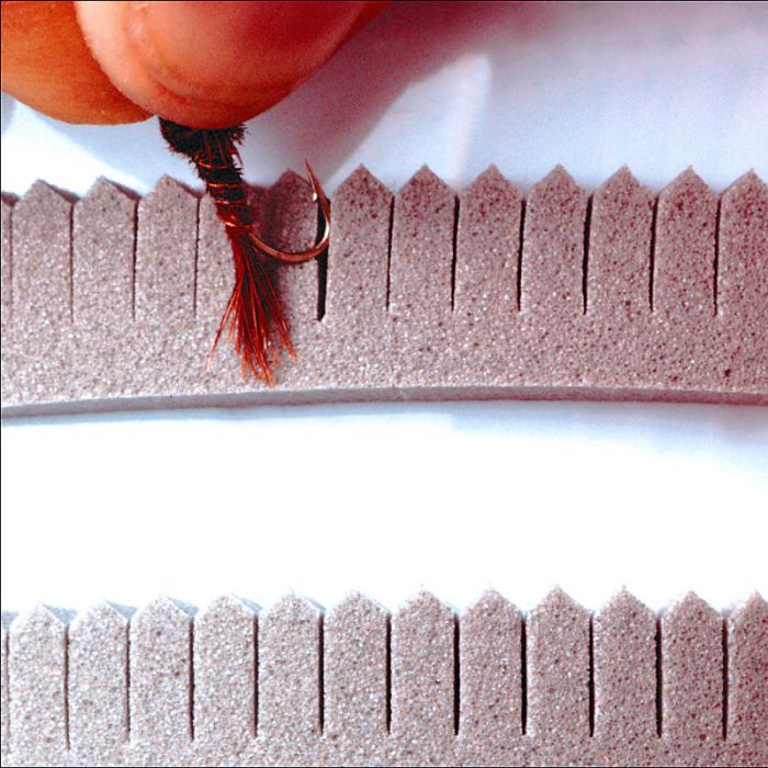 Auf den beiden extra dicken micro-geschlitzte Schaumstoffstegen finden bis zu 12 Fliegen der Hakengröße #5/0 platz!