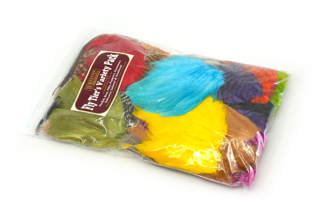 Das Whiting Tier's Variety Pack mit bis zu 25 verschiedenen Federstücken ist eines der besten Feder-Packs von Whiting. Es lassen sich etliche verschiedene Streamer, Nass- oder Lachsfliegen binden, und das mit einer gewohnt hohen Materialqualität, aber zu einem erstaunlich fairen Preis.