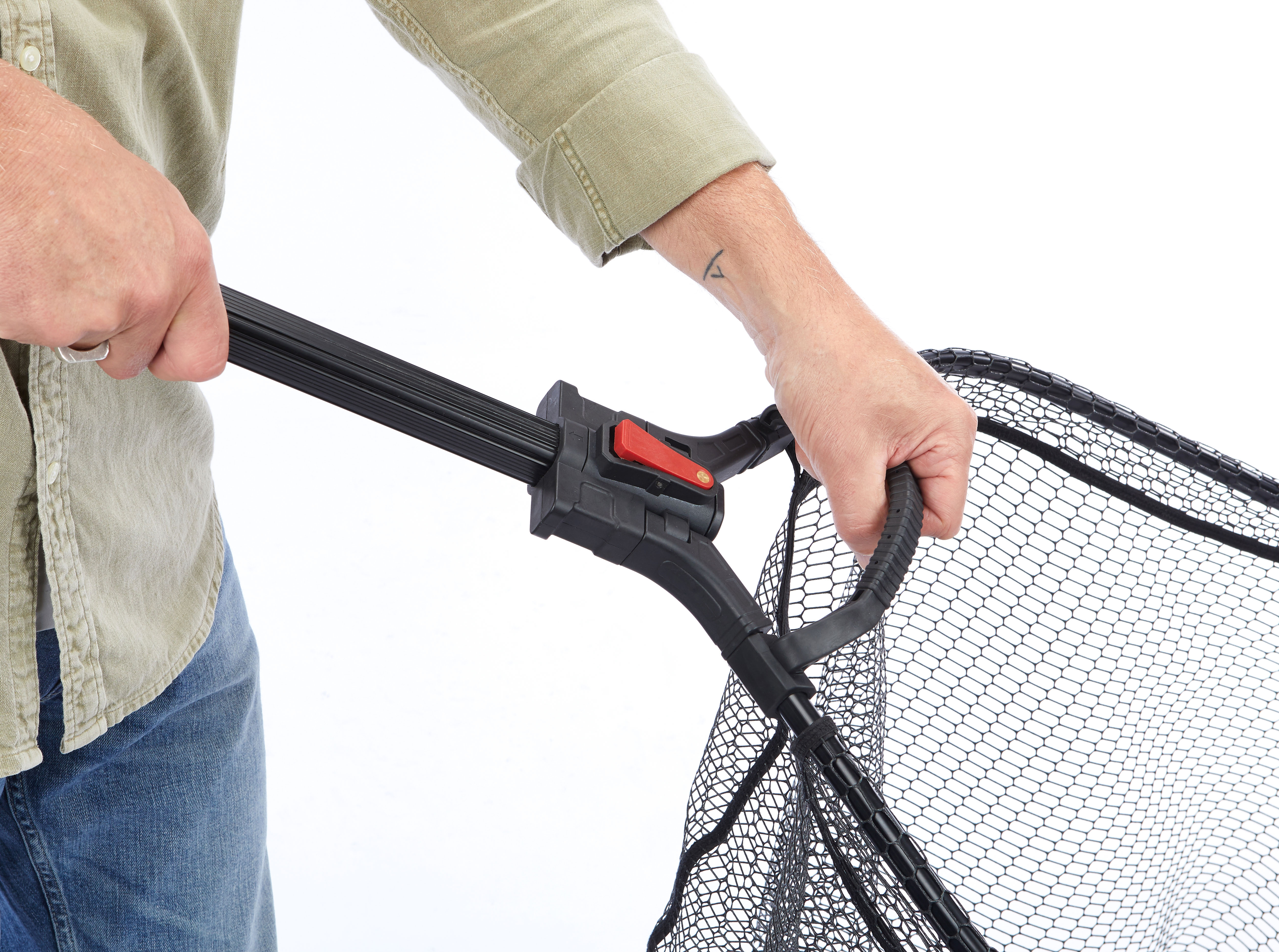 Dieser Bootskescher lässt sich zusammenfalten und so platzsparend transportieren. Die Kescherstange wird durch Druck auf den Komfortknopf arretiert. Mit Hilfe der angebrachten großen Schlaufe kann der Kescher mit einem großen Fisch sicher und einfach ins Boot gehoben werden. Gummiertes, tiefes Netz und griffiger Duplon Griff!