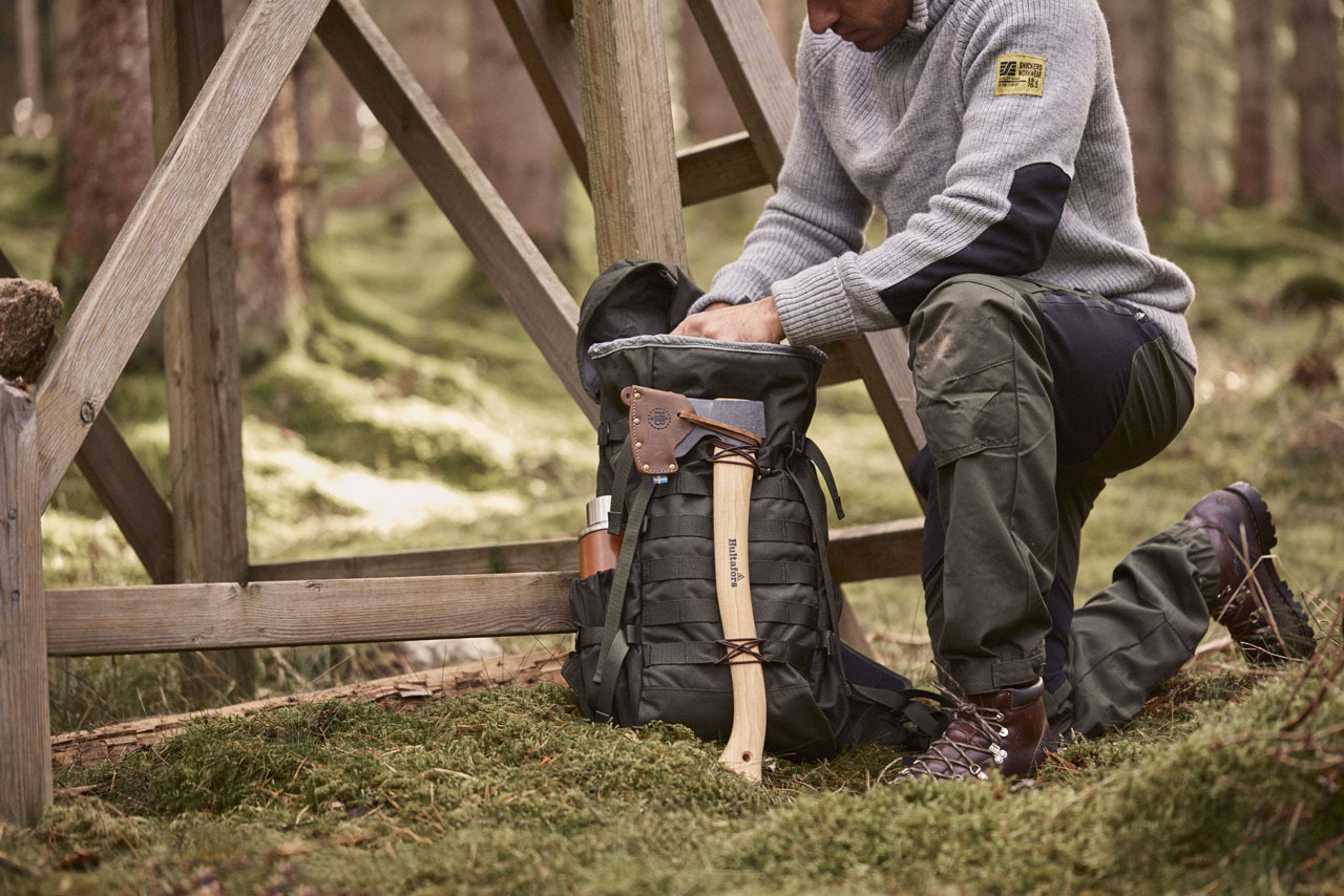 Dvardala ist eine perfekte Axt für die Jagd und Forstwirtschaft. Es handelt sich um eine Kombination aus mehreren verschiedenen Axttypen, ideal für einen Tag im Wald, in dessen Verlauf Ihnen möglicherweise eine Vielzahl von Herausforderungen begegnet. Sie hat den gleichen Kopftyp wie die Hultafors Åby Waldaxt, jedoch ist der Stiel mit 440 mm (17 Zoll) kürzer als bei dieser, sodass die Axt leichter mitgenommen werden kann, z. B. in einem Rucksack. Der kürzere Stiel erleichtert auch das Arbeiten mit der Axt nah am Körper. Die Axt eignet sich für Präzisionsarbeiten wie das Schnitzen oder Bauen von Unterständen, Feuerstellen und anderen Dingen rund um einen Campingplatz. Dies wird durch eine wohlproportionierte Griffmulde und eine halbgerade Schneide mit flachem und breitem Schliff gewährleistet. Die Griffmulde ermöglicht, die Axt direkt am Kopf zu greifen und so mit maximaler Kontrolle zu arbeiten. Die halbgerade Schnittkante verfügt über flachere Flanken, sodass die Axt fest auf dem Werkstück aufliegt, wenn Sie entlang eines Holzstücks hacken. Dennoch ist die Wölbung der Schneide ausreichend, um die Axt für leichtere Forstarbeiten wie das Räumen eines Weges oder das Schneiden einer Feuerlinie einzusetzen. Der Kopf ist an den Flanken etwas dicker, wodurch er eine gute Spaltfähigkeit aufweist, sodass er sich auch zum Hacken von Brennholz hervorragend eignet. Dvardala ist ein Geschenk, das Jäger auf der ganzen Welt zu schätzen wissen und das sich natürlich auch bei der Verarbeitung von Wild im Feld als nützlich erweist. Die Axt wird in der Schmiede Hults Bruk gemäß der Traditionen von 1697 handgeschmiedet. Der Kopf wiegt nominell 0,7 kg und ist aus schwedischem CO2-neutralem Axtstahl gefertigt. Die halbgerade Schneide ist mit einem skandinavischen Premium-Schliff versehen, poliert, rasiermesserscharf und gebrauchsfertig. Der gebogene, schmale Stiel der Axt ist mit einem ausgeprägten Endknauf versehen, der einen sicheren Griff ermöglicht. Die Scheide wird in Schweden aus