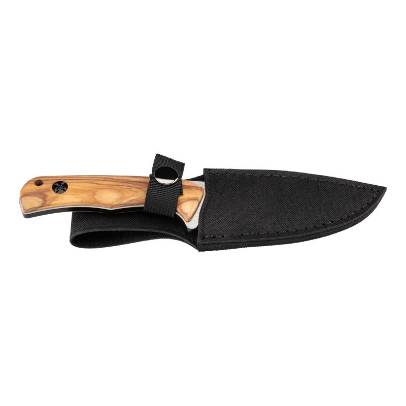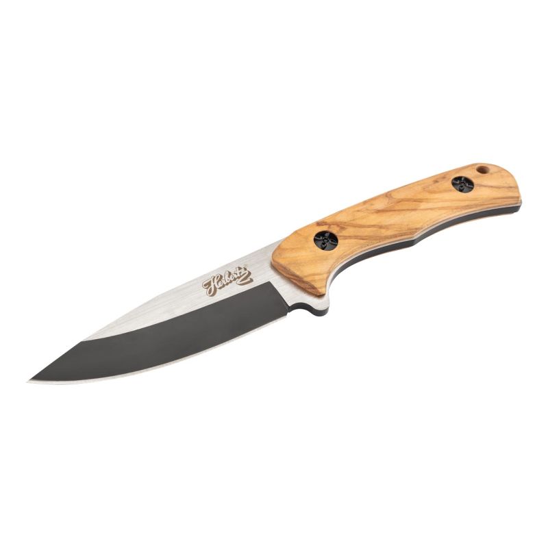 Entdecke das Herbertz Gürtelmesser aus Zebranoholz, das ultimative Werkzeug für alle Outdoor-Enthusiasten. Mit einer Gesamtlänge von 21,60 cm und einem Gewicht von nur 192 g liegt dieses Messer leicht und komfortabel in der Hand. Der Griff aus edlem Zebranoholz mit einer Länge von 11,5 cm verleiht dem Messer nicht nur ein elegantes Aussehen, sondern auch eine hervorragende Griffigkeit. Die feststehende Klinge aus hochwertigem 420er Stahl mit einer Länge von 10,1 cm ist robust und langlebig, ideal für alle Schneidarbeiten im Freien. Perfekt für alle, die in der Natur unterwegs sind und ein zuverlässiges Werkzeug an ihrer Seite benötigen – das Herbertz Gürtelmesser ist Ihr idealer Begleiter für jedes Abenteuer.