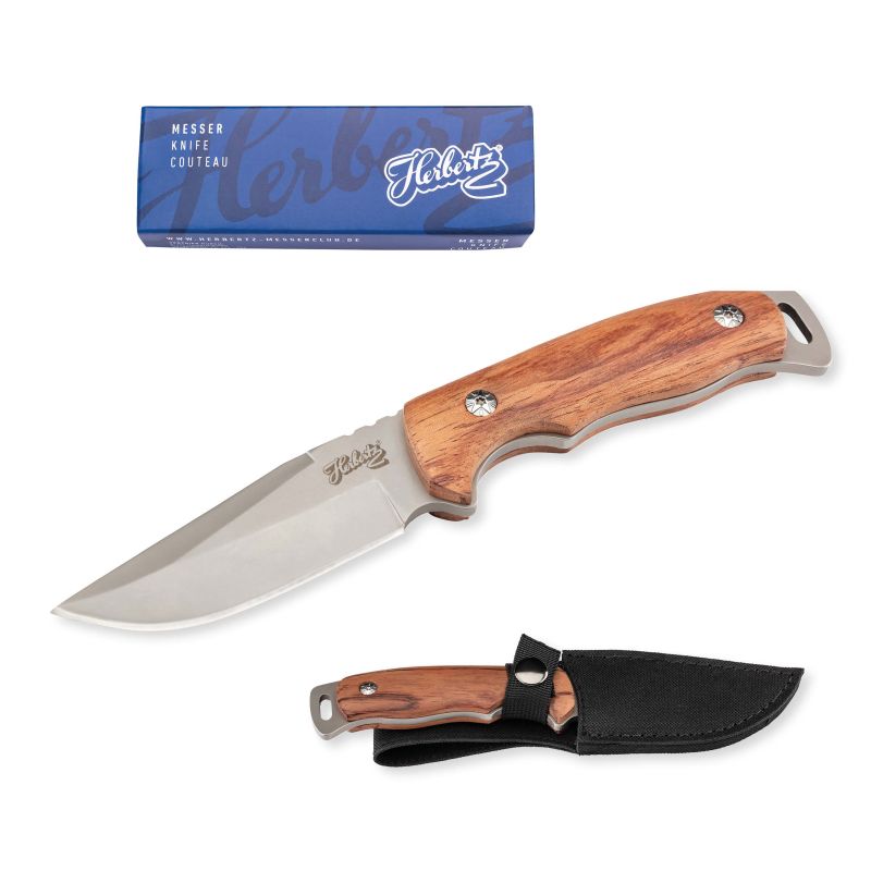 Herbertz Gürtelmesser, AISI 420 Stahl, rostfrei, Full Tang, Olivenholz Heftschalen, Fangriemenöse, Nylonscheide