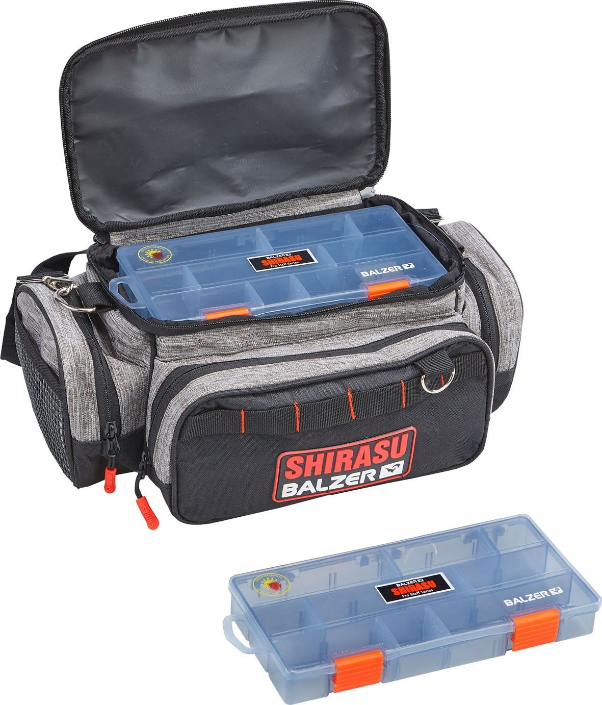 Organizer Bag, bestückt mit jeweils 2 Shirasu Tackle Boxen. Optional kann jede Tasche noch mit einer weiteren Box (einzeln erhältlich) nachgerüstet werden. Die Taschen aus hochwertigem 600D Nylon