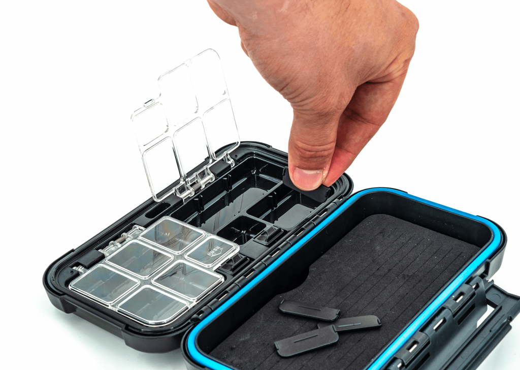 Reload Rigged Boxen sind aus schlagfestem ABS-Material gefertigt und mit einer dauerhaften Silikondichtung versehen. Diese Eigenschaften sorgen dafür, dass die Box im Wasser schwimmt und garantiert, dass Ihr Angelgerät bei jedem Wetter trocken bleibt. Jede der Boxen verfügt über mehrere individuelle Fächer und Trennwände, so dass Sie die Boxen ganz nach Ihren Wünschen gestalten können. Die Boxen sind außerdem mit einem EVA-Rigboard ausgestattet, das sich perfekt für die sichere Aufbewahrung vorgeriggter Köder eignet, wenn Sie unterwegs sind.